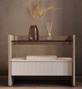 But that’s just the beginning. Make your nightstand even more eye-catching by incorporating geometric accents, sleek vintage pieces, or decorative lighting. These small touches can add a sense of modern elegance and subtle sophistication, turning a simple piece into a statement element in your bedroom.